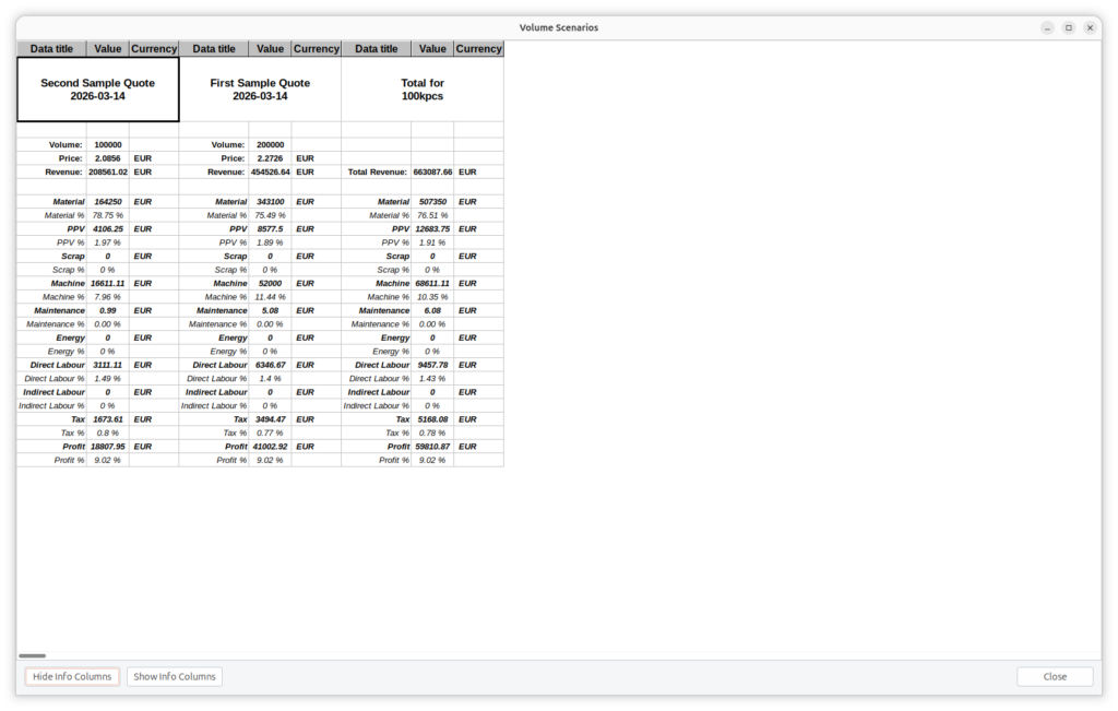 A fejlesztés természetesen nem áll itt meg. A volumen összehasonlítások, P&L szimuláció és az aktuális eladások elemzése még rengeteg feladatot fog adni. De hisszük, hogy egy olyan rugalmas, az üzleti élet minden területén jól használható eszközt adunk a cégeknek, vállalkozóknak, amivel naprakészen tudják tartani árajánlataikat és képet kaphatnak azokról a költségelemekről, amik legnagyobb hatással vannak üzleteik profitabilitására.